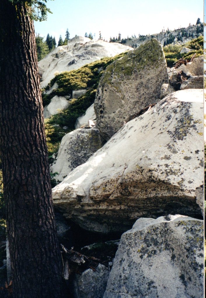 We bustled about with over-preparation, knowing that to stop and lie down would be the end of control over what happened next. The gray crack that was the opening faded to black, and we were crowded by the boulders that now seemed to be leaning inwards, as if to snuff out the light from my headlamp. “Good night,” I said as normally as I could, and switched it off. Blackness poured in and filled the cave with still, liquid silence, like being immersed in crude oil. No sound could be heard from outside. Then, from all around us, little varmint rustlings emanated tentatively from deep within the cracks. There was probably a labyrinth of rodent gangways throughout the entire rock pile! Our eyes could not see a thing, so our senses of hearing and touch were amplified. We could sense the anxious movements of the critters as they bustled all about us on their nocturnal errands. I could hear the scuffling of their little claws on the hard rocks. The graveyard shift was just beginning, and all the workers were hurrying into their positions on the line. Pitter-patter! Rustle! Nibble-nibble! Snap! Every tiny noise grew to a crescendo of cymbals at an orchestra. It was going to be a lo-o-ong night!