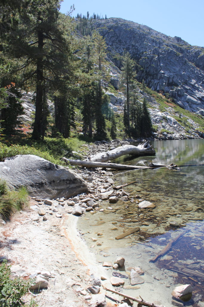 There are really only two areas to explore easily from the east end of Big Bear Lake. The sliding pools of water lay behind us and down a few hundred years to the east, which were now only a trickle late in a dry year. Visiting them meant we would have to walk uphill again to return to camp. No way! We opted for the more level shoreline trail that curves away to the south and west. David’s objective for the day was clear, as he cast his line in a high arc over the still cove, breaking up the magnificent reflections of Sawtooth in the water. My prey was more subtle. I was fishing for redemption. By the time I found a comfortable rock (certainly a relative judgment in this area), I had slipped back inside my mind to search for my lost self; descending deep into the tunnels of suppressed memories, not caring that it might be a steeper climb back to the present moment. Without bidding, I returned again to my first day at this lake with my father.