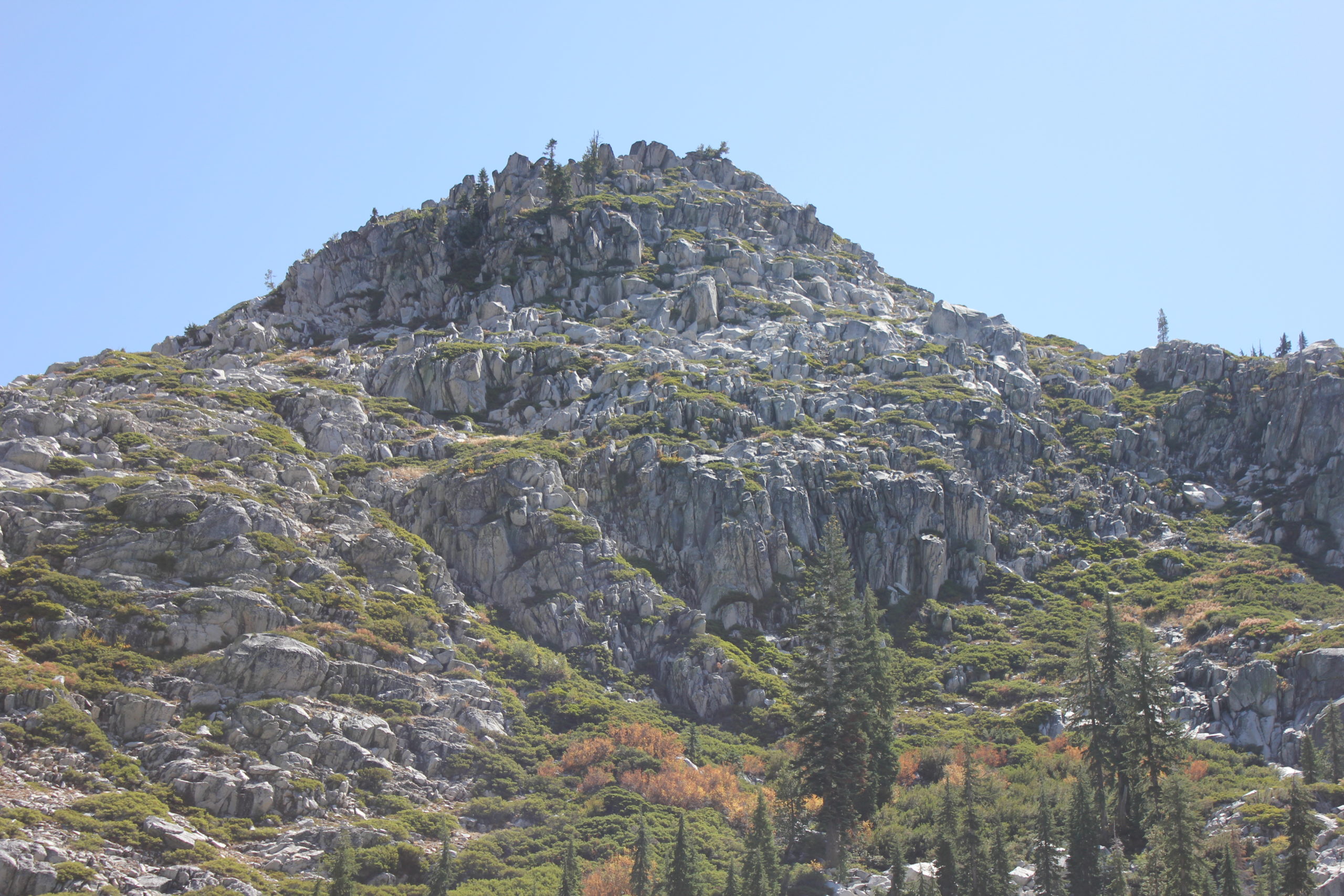 The cool and vacant morning air was replaced the daily surge of warmth in the afternoon. Without any agenda, or online list of things to do, or cell phone reminders, we managed to accomplish a great assortment of meaningless milestones before dinner. David persuaded my tent to stay up by itself, cleaned up his sleeping gear, and assembled his fishing pole. I tidied up the camp and stowed the food away from varmints. I fantasized about making a raft and anchoring our larder out in the lake, but had disturbing visions of a flotilla of marauding chipmunks in tiny bark canoes. They were much bolder at this campsite, which was by far the most often-used site accessible from the Bear Creek trailhead. Several well-fed specimens just sat around on the rocks all around our campsite, expectantly fixing their beady little eyes on our backpacks, and waiting for us to leave them unguarded. With no dogs around, they were downright disrespectful.